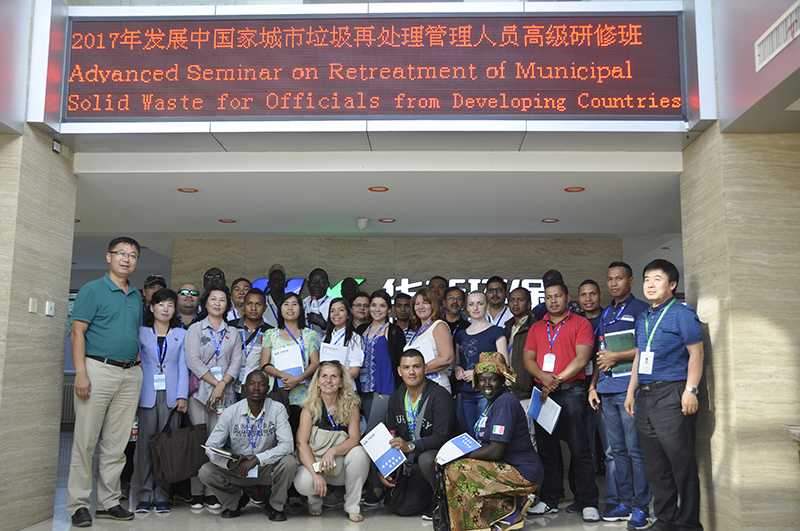 华新环保公司。近距离参观、感受了我公司在电子垃圾处理方面取得的最新成果。2017年9月19日,发展中国家城市垃圾再处理管理人员高级研修班学员一行32人,在环境保护部宣传教育中心的带领下,参访研修班学员大部分来自非洲国家,少部分学员来自亚洲的朝鲜等发展中国家。在领队翻译带领下,大家先后参观了陈列室、洗衣机处理生产线、进口德国冰箱处理生产线,并在华新环保展厅详细了解了华新的发展历程、蝉联奖项,了解了中国目前对环保行业的重视和先进的处理技术。面对华新展厅成果,众多友人纷纷举起手机拍照、合影留念。