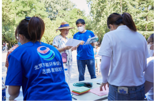 活动期间,来自北京节能环保促进会的志愿者们给居民发放了调查问卷,了解居民处理小旧家电的方式和意愿等。